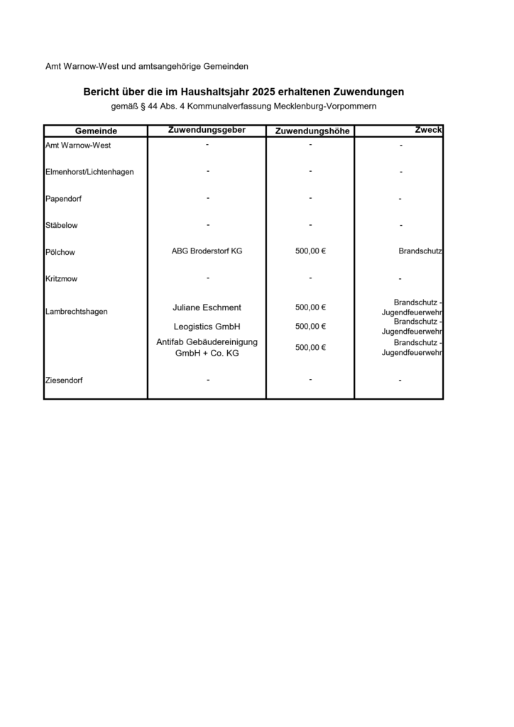 Veröffentlicht am: 18. März 2026 vom Amt Warnow-West