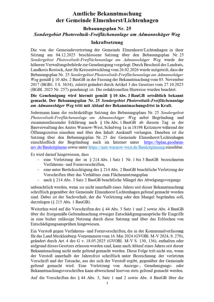 Veröffentlicht am: 18. März 2026 vom Amt Warnow-West