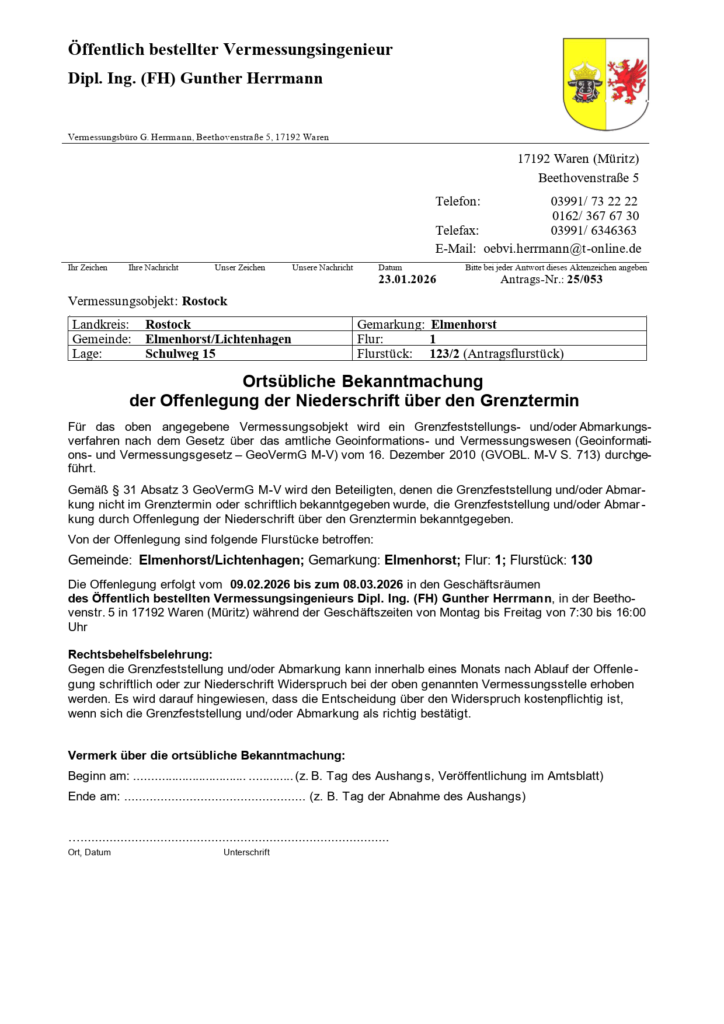 Veröffentlicht am: 23. Januar 2026 vom Amt Warnow-West