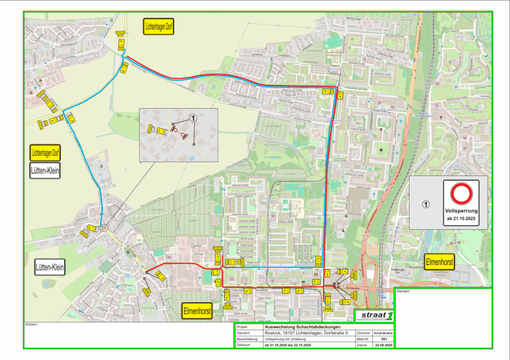 Vom 21.10.2025, 8.00 Uhr bis zum 22.10.2025, 14.00 Uhr kommt es zur Vollsperrung des Kreisstraße 10 (Dorfstraße) Höhe Nummer 48.