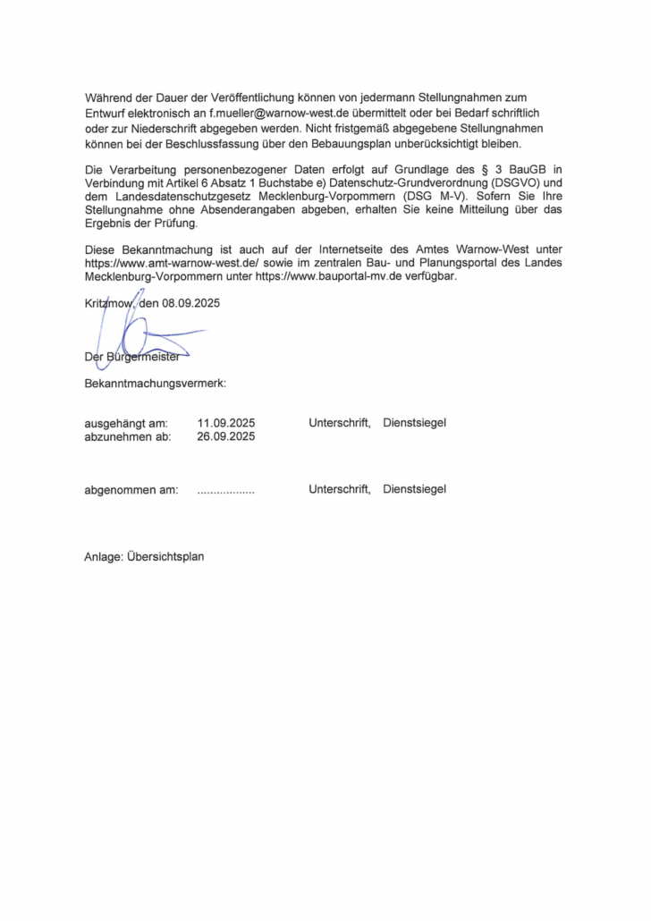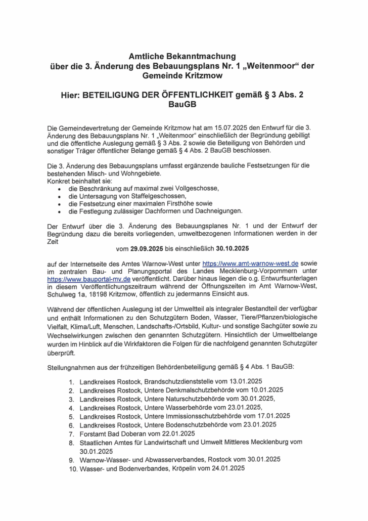 Veröffentlicht am: 11. September 2025 vom Amt Warnow-West