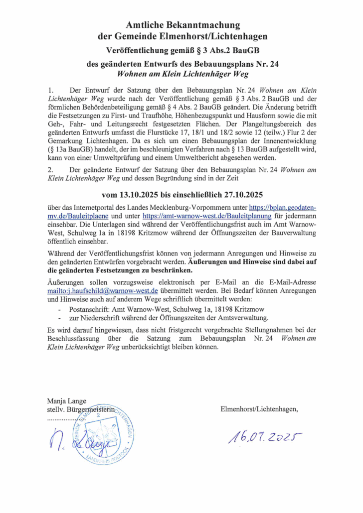 - 25-09-24 Öffentliche Bekanntmachung erneute Auslegung B-Plan Nr. 24 Gemeinde Elmenhorst_Lichtenhagen